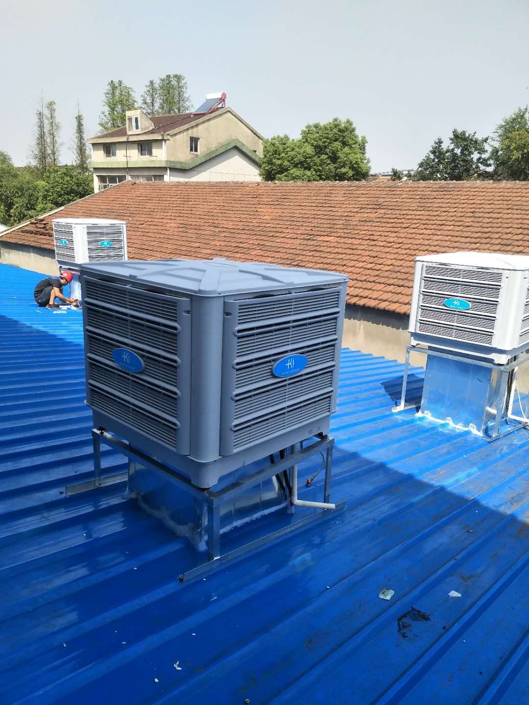 鋼結(jié)構(gòu)鐵皮廠房用科瑞萊環(huán)保空調(diào)KD18整體降溫