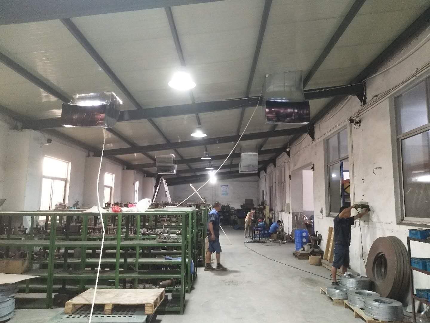 鋼結(jié)構(gòu)鐵皮廠房是最近這幾年興建的最多的廠房,因?yàn)殇摻Y(jié)構(gòu)鐵皮廠房的性價(jià)比比較高,許多的工廠老板都搭建了鋼結(jié)構(gòu)鐵皮廠房,因?yàn)槌杀緦?duì)比混泥土廠房來說要實(shí)惠很多,但是鋼結(jié)構(gòu)鐵皮廠房有一個(gè)弊端,就是夏天的時(shí)候非常悶熱,夏天鐵皮是吸熱的,室內(nèi)非常的悶熱。鋼結(jié)構(gòu)鐵皮廠房降溫是工廠老板比較頭疼的問題,給大家分享一些鋼結(jié)構(gòu)鐵皮廠房用科瑞萊環(huán)保空調(diào)KD18整體降溫圖